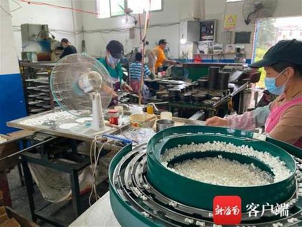 當地居民在瑯塘鎮一家電子陶瓷廠內工作。記者 張宏波 攝