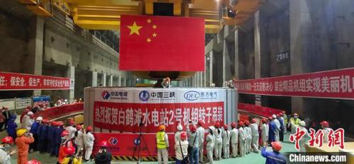 白鶴灘水電站2號機組轉子吊裝成功。東方電機 供圖